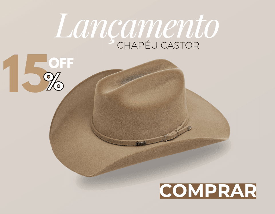ou 10x de R$ 50,47 com jurosChapéu Country Castor Premium Aba Curva Bandinha A...